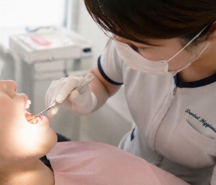 専門の歯科衛生士が行うProfessional Mechanical Tooth Cleaningで、歯石やプラークを徹底除去。